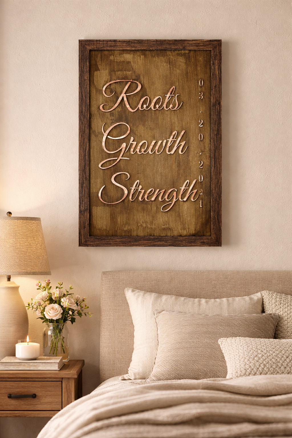 Custom Anniversary Wood & Copper Sign | Personalized Wedding Gift | Roots Growth Strength | Framed Wall Art | Couple Keepsake